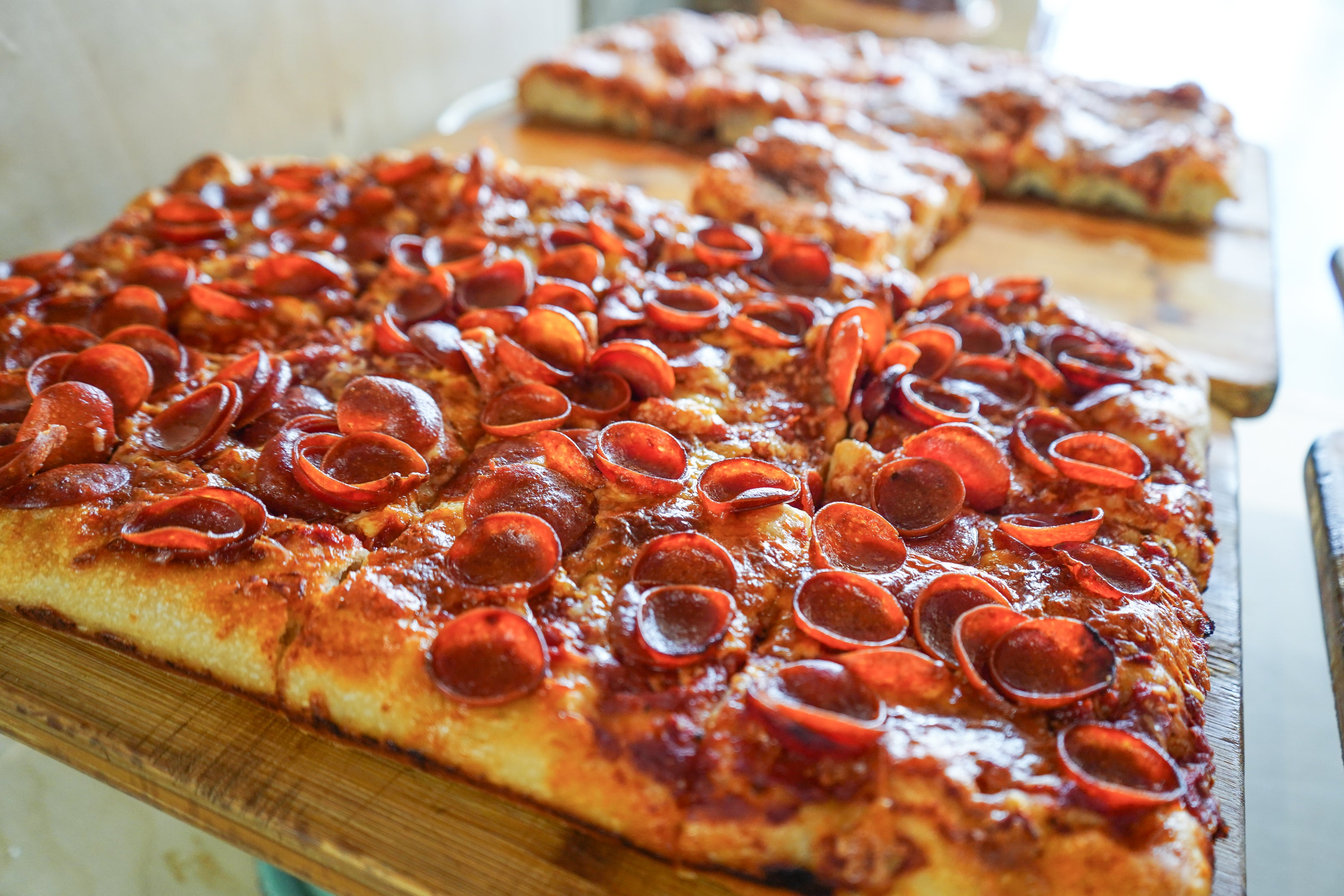 The grocery store is open seven days a week from 11 am to 7 pm. The deli serves pizza, sandwiches, and garlic balls all day (or until we run out) every day except Sunday and Monday.