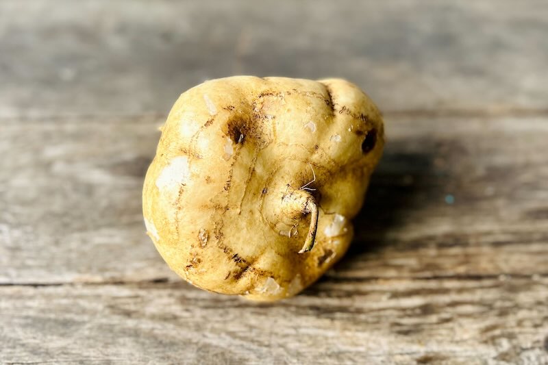 With crispy and crunchy flesh, jicama is slightly sweet and nutty. It can be said to be a cross between a potato and pear! Voila! Refreshing, mildly sweet, and tender. Jicama is a root vegetable that is said to be a cross between a potato and a pear. Jicama is delicious when raw and cut into bite size pieces. It can also be cubed and added to salads, sauteéd, roasted or fried into "chips." This vegetable is versatile and refreshing!