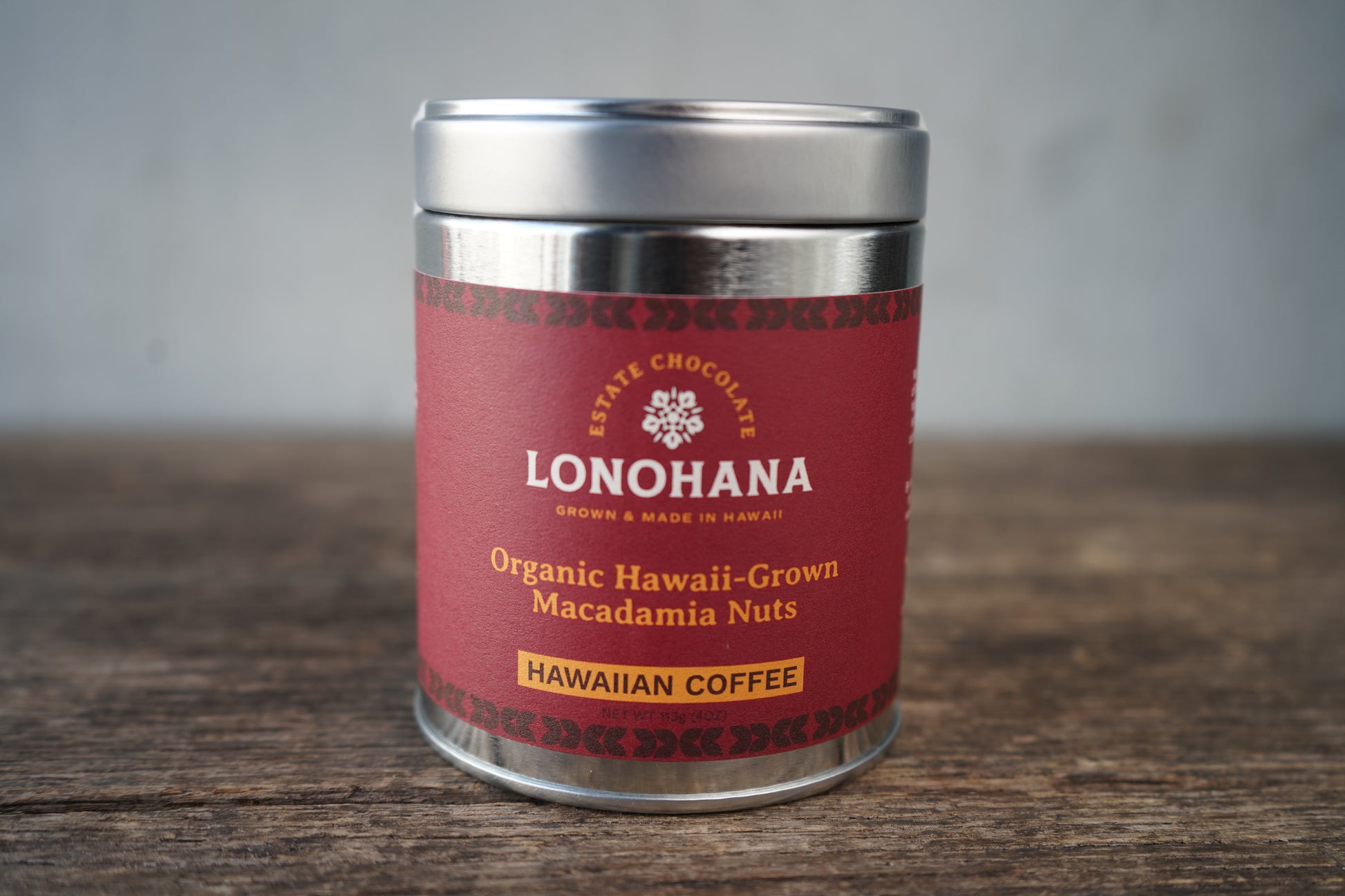 Ingredients: Organic Hawaiian macadamia nuts, Lonohana Dark Chocolate (Hawaiʻi-grown cacao, organic cane sugar, organic cocoa butter, organic whole milk powder), Kaʻu coffee, cocoa powder