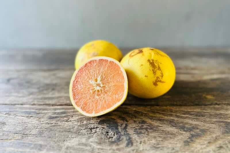 This is a cross between an orange and a pomelo. Sour to semi-sweet, somewhat bitter. Pink grapefruits are slightly more nutritious than the white varieties due to the phytochemicals that cause their pink color. 3 fruit per lb