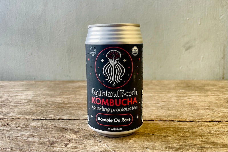 Ingredients: Big Island Booch raw green tea kombucha*, cardamom*, rosehips*, hibiscus*, rose extract*